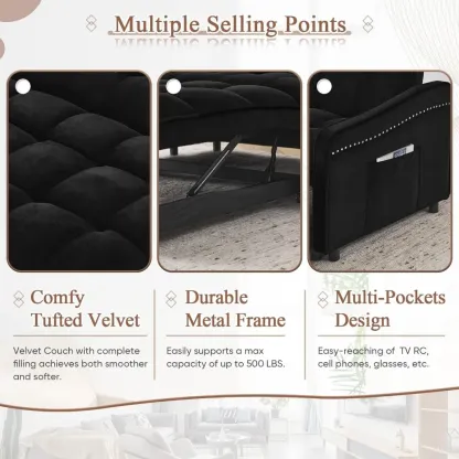 - 【Comfy Modern Couch】 The high-quality anti-wrinkle velvet sofa adopts unique ergonomic curved armrests to better fit the arms and reduce arm pressure. The smooth curved lines of the armrests are elegant in outline, and the silver rivets on the sides are shiny and chic. This modern and stylish sofa is unique in any home style.