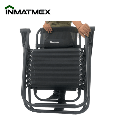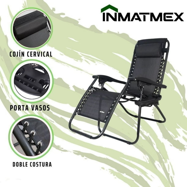 Camastro reclinable gravedad cero, ideal para jardines, terrazas, exteriores. Es plegable, reclinable, cuenta con una almohadilla para la cabeza. Estructura de acero resistente a la corrosión.