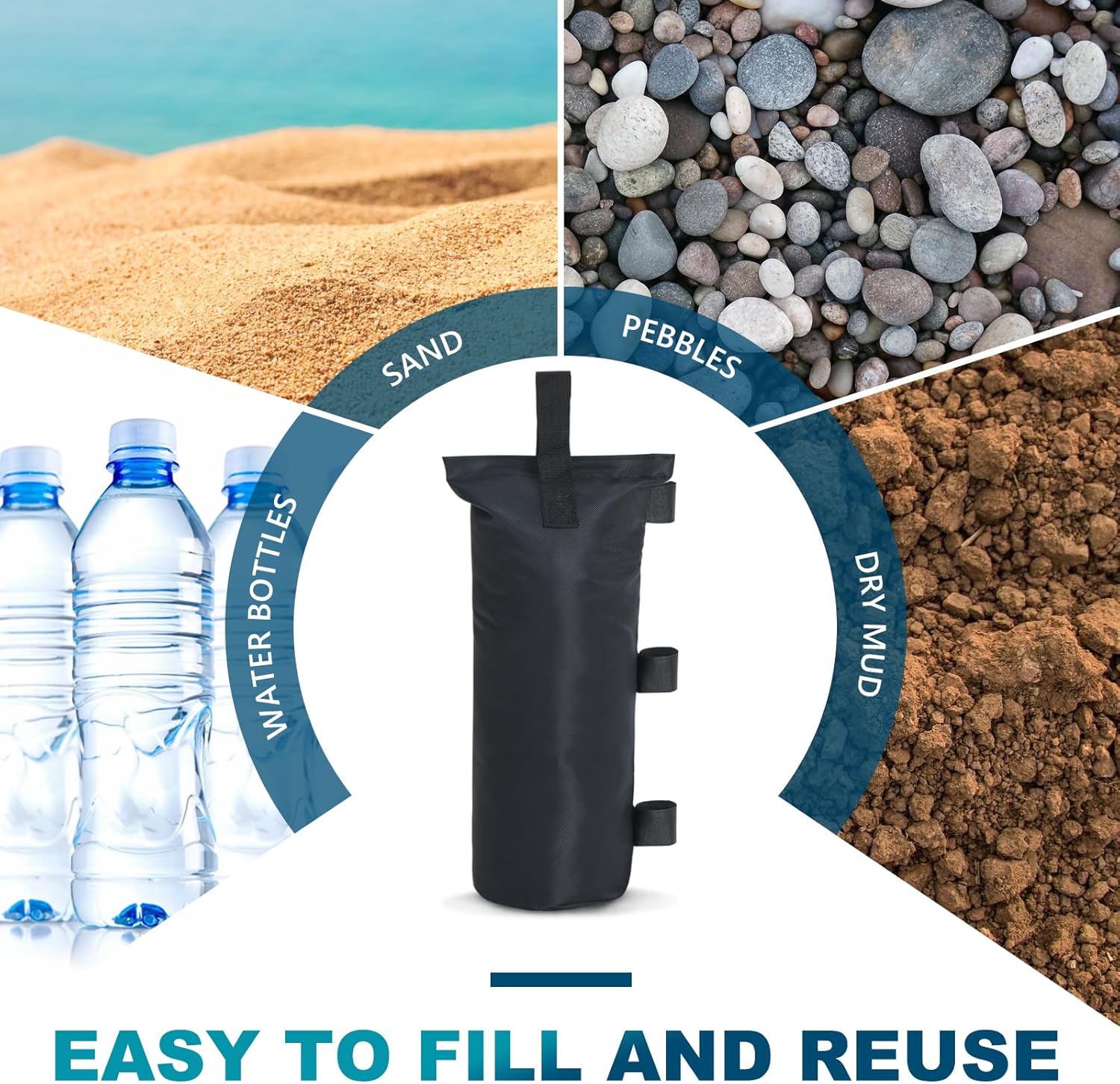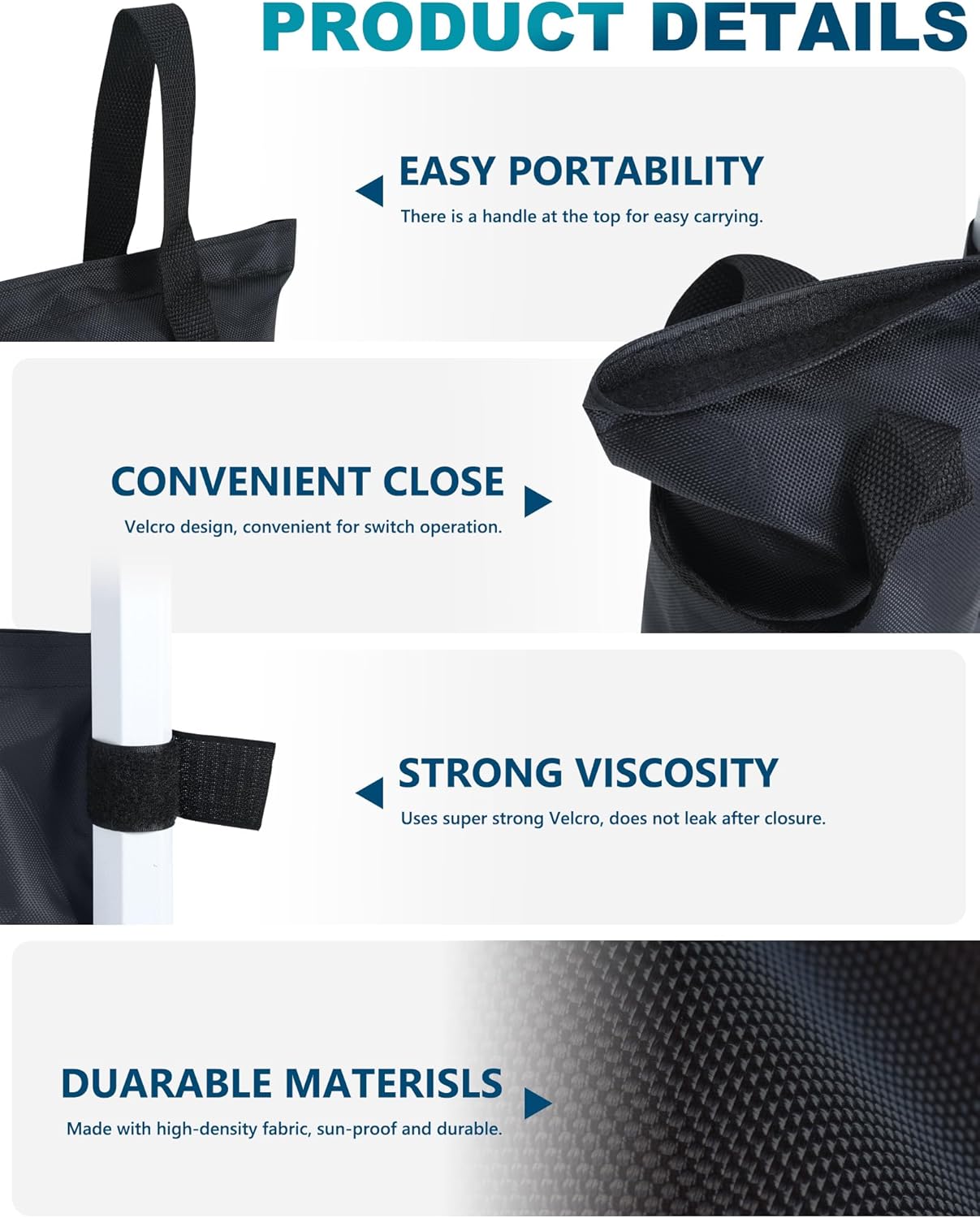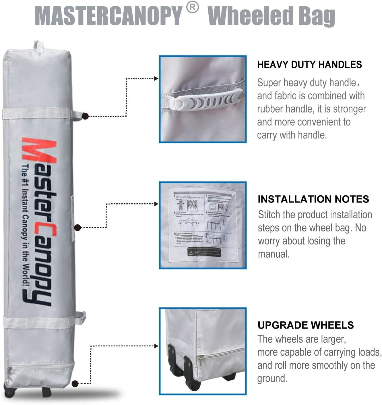 Paquete mejorado: incluye marco desplegable de 6.6 x 6.6 pulgadas + cubierta superior de tienda + bolsa de rodillo + 4 bolsas de peso. La bolsa con ruedas es de 52 x 9 x 9 pulgadas, tela de PVC recubierta 600D para transportar el toldo desplegable con facilidad.