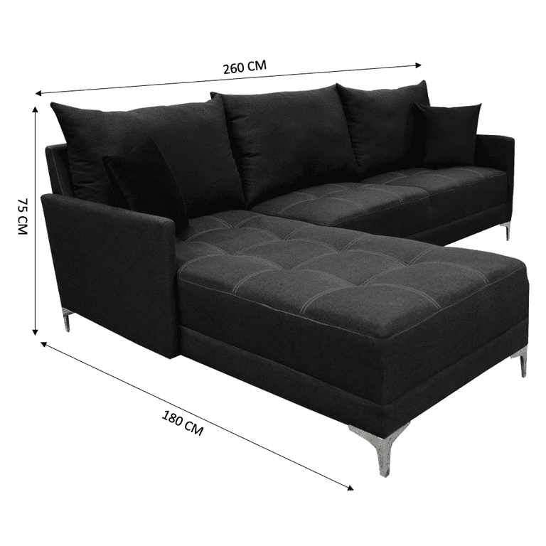 Modelo Moderno. abotonado y elegante llamado Caslon, Excelente opción para tu sala ó cualquiera de tus espacios! Elaborada con estructura 100% en madera de pino estufada, tapizada con fina lino nacional en color gris oxford, patas cromadas. Acojinamiento con hule espuma de alta densidad para mayor confort y durabilidad. Medidas: Largo 260 cm, Ancho 180 cm, Altura 75 cm, Profundidad 90 cm