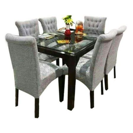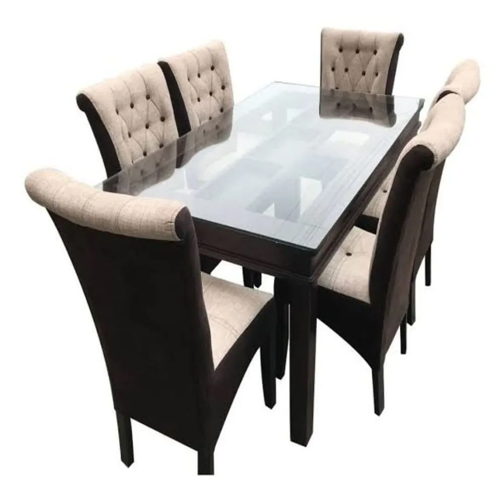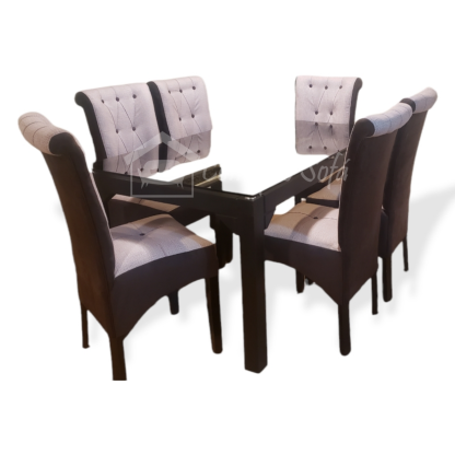 Juego de comedor 6 sillas modelo Matheo, con un estilo moderno, un modelo ideal para departamentos, cuenta con un tablero de vidrio templado que facilita la limpieza.